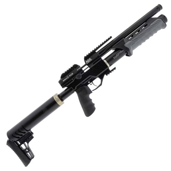 Built with a black finish, this air rifle weighs 7lbs and features a collapsed length of 22 Inches . The substantial 600cc air reservoir provides extended shooting sessions between refills. The 22mm Picatinny rail allows mounting of optics or accessories.