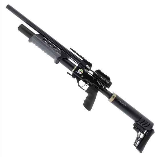 The rifle operates on PCP (pre-charged pneumatic) system with 310 BAR fill pressure with internal adjustable regulator.