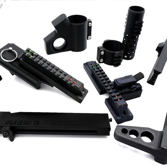 The FIRST GEN T9 SBR kit was so SUCCESSFUL that we had to do a Gen 2 Remix! MORE USABILITY including the ability to use lead ammo! Zero extra cost. THESE ARENT CARBON! We have moved to a Black material that isnt a Fiber Reinforced filament! Why? Carbon has skyrocketed price wise, and rather than pass on a huge cost increase, we went and found an OVERALL BETTER CHOICE MATERIAL! Clean, Simple, Durable.