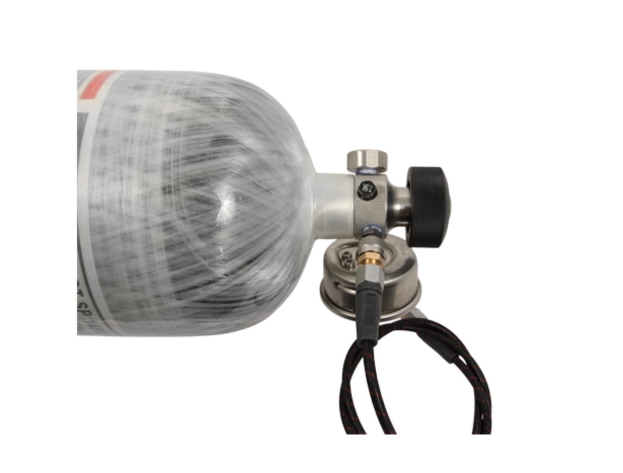 Provides portable high pressure air for refilling your precharged airgun while at home or in the field. The high pressure system provides ample fills on any size airgun cylinder, and reduces the frequency of having to travel to dive shops for a refill. This unit comes complete with the cylinder, valve and hose, making it ready to use with any standard 1/8" BSP adaptor which comes standard with most airguns. New to this cylinder is the 4500psi certified, HP3 valve. This valve allows precise control of the fill rate, provides a quick reference pressure gauge for tank pressure as well as a large 2 inch, oil-filled, easy-to-read fill gauge that reads in both PSI and BAR measurements. The Quick Connect style valve comes complete with a 1 Meter long Zero-Kink hose that can be tied in a knot without kinking, and includes an QC adapter to fit the valve.