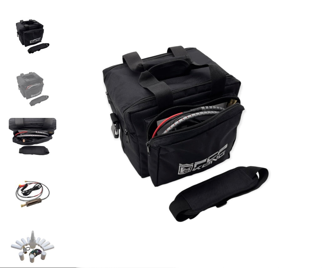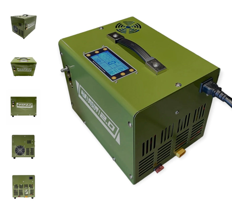New portable compressor by PCP Kong. This little workhorse has a built-in power adapter so you can plug directly into your 110v wall outlet or 12v car battery.