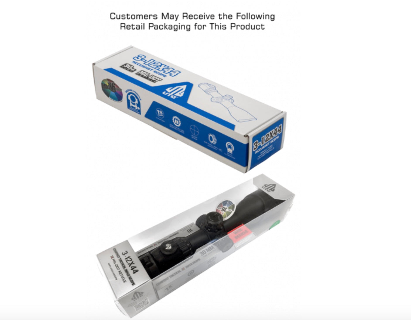 UTG 3-12X44 30MM COMPACT SCOPE, AO, 36-COLOR MIL-DOT, RINGS SCP3-UM312AOIEW