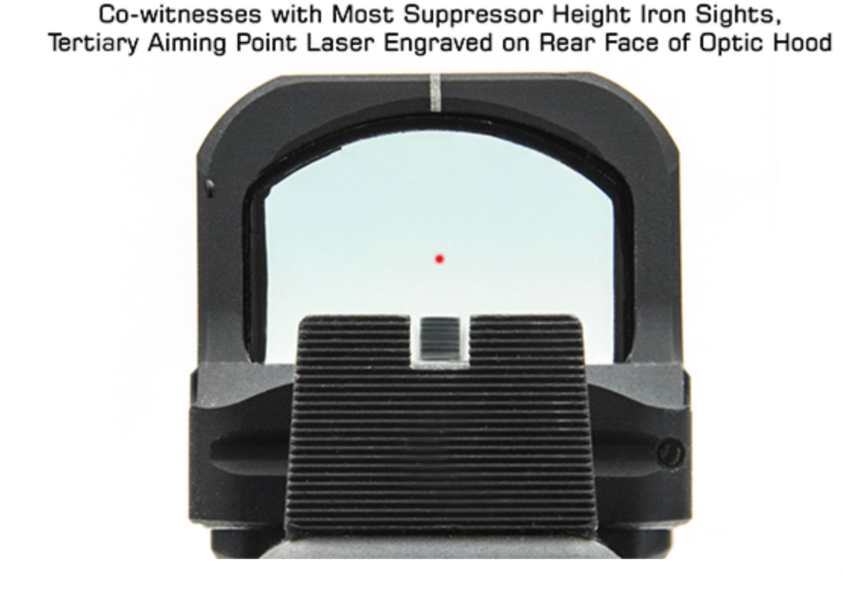 - Tertiary Aiming Point Laser Engraved on Rear Face of Optic Hood
