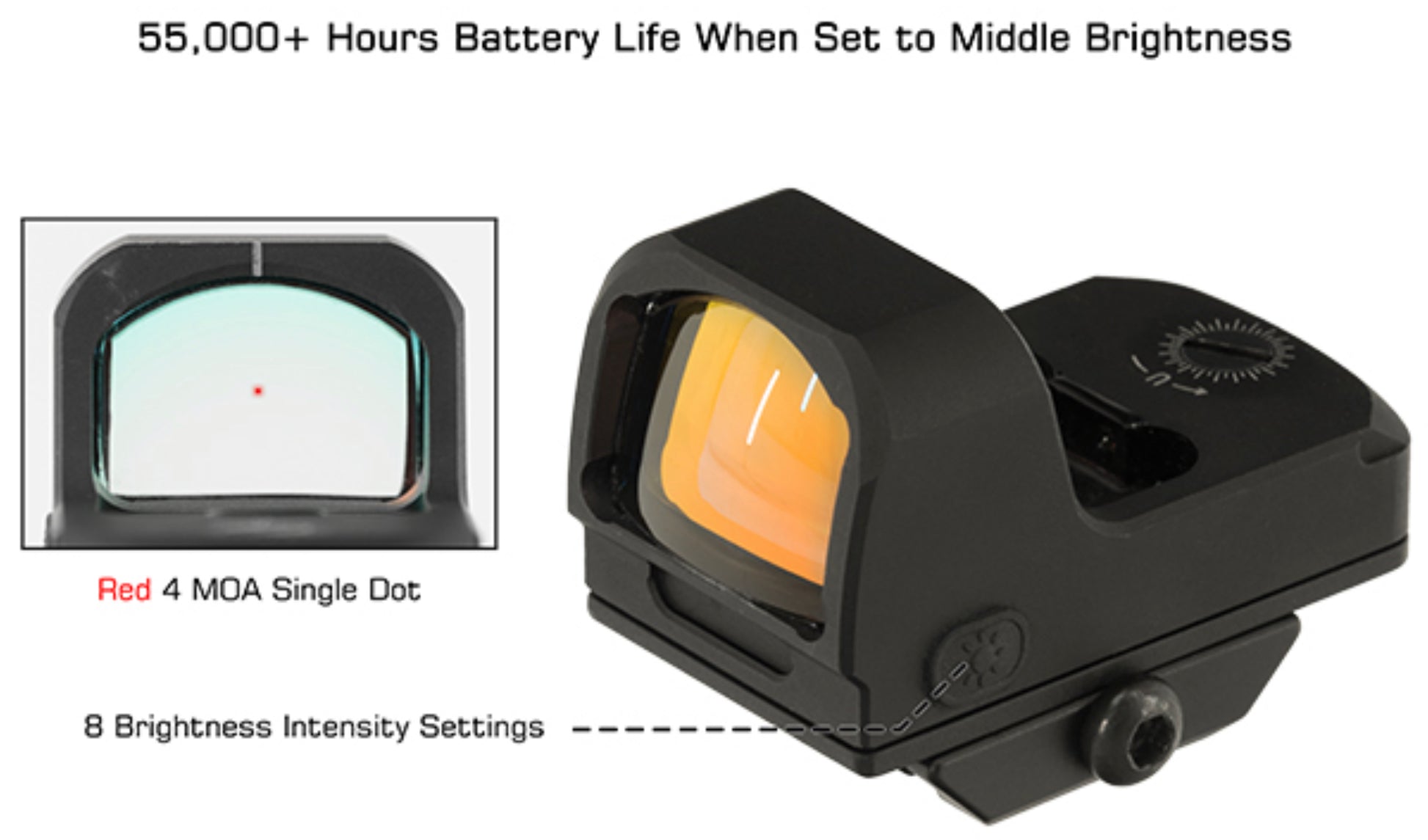 - Red 4.0 MOA Single Dot with 8 Brightness Intensity Settings