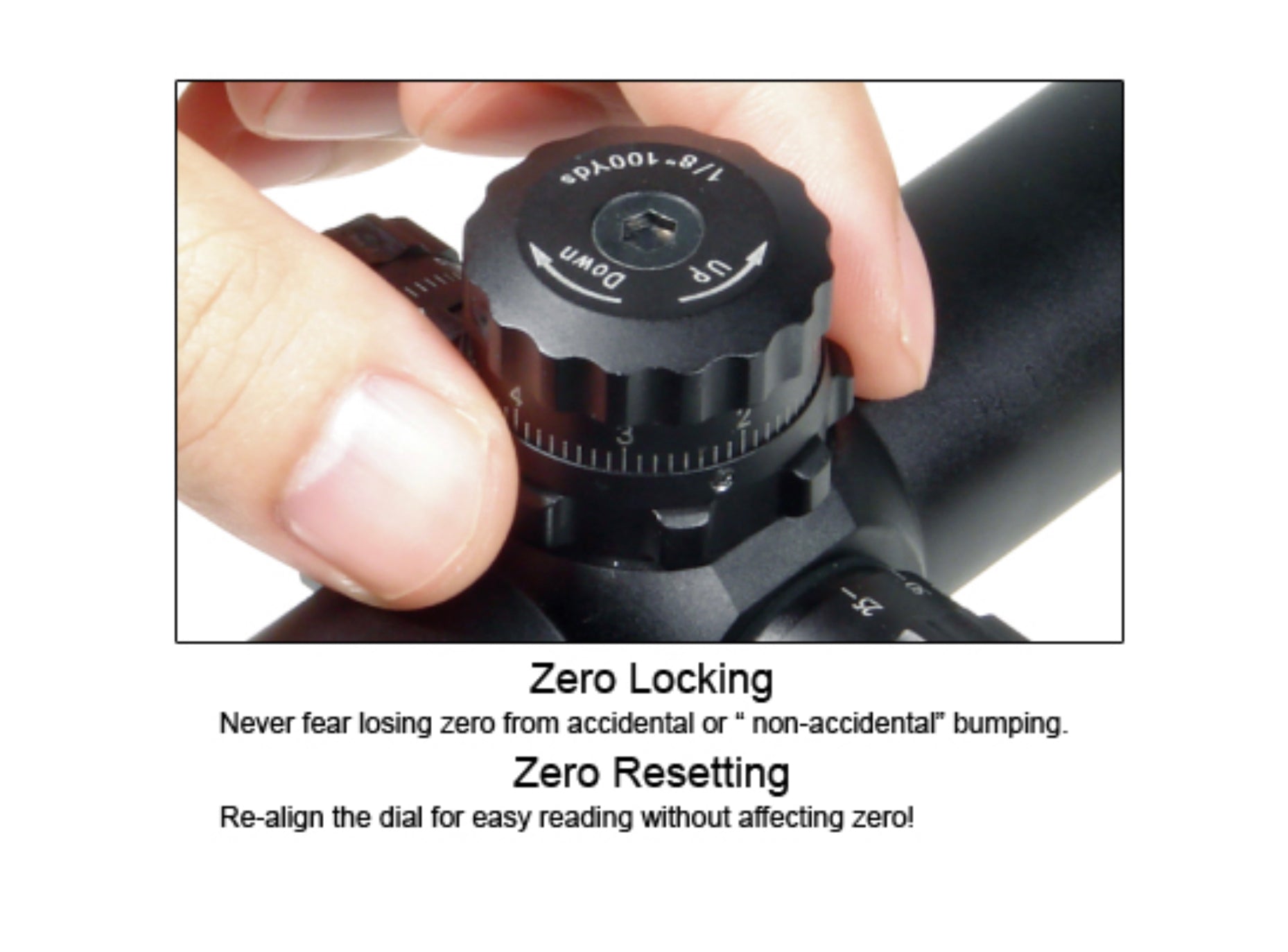 - Premium Zero Lockable and Zero Resettable Target Turrets with Most Consistent and Precise 1/4 MOA per Click Adjustment