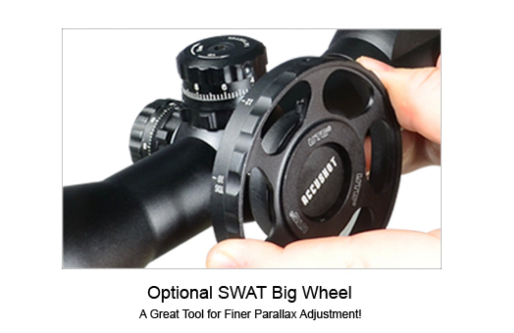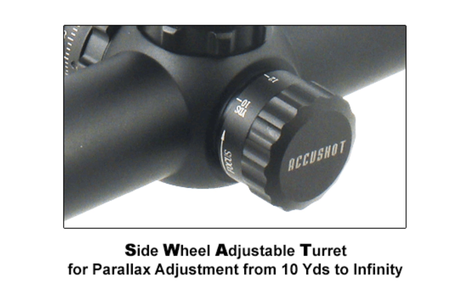 - Side Wheel Adjustable Turret (SWAT) for Parallax Adjustment - From 10 Yards to Infinity