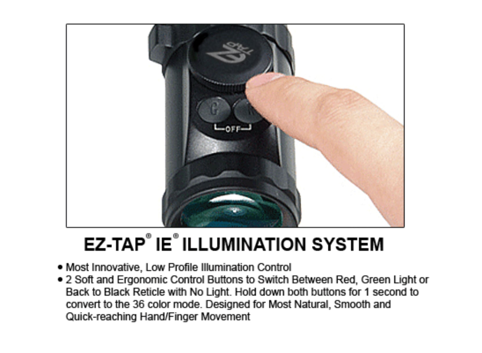 - Innovative EZ-TAP® Illumination Enhancing (IE®) System with Red/Green Dual-Color Mode and 36 Color Multi-Color Mode to Accommodate All Weather/Light Conditions