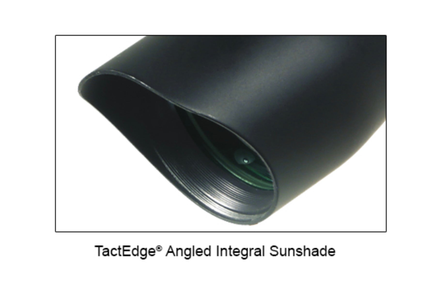 - Mil-dot Range Estimating Reticle with Built-in TactEdge® Angled Integral Sunshade for Most Optimal Aiming and Shooting Performance