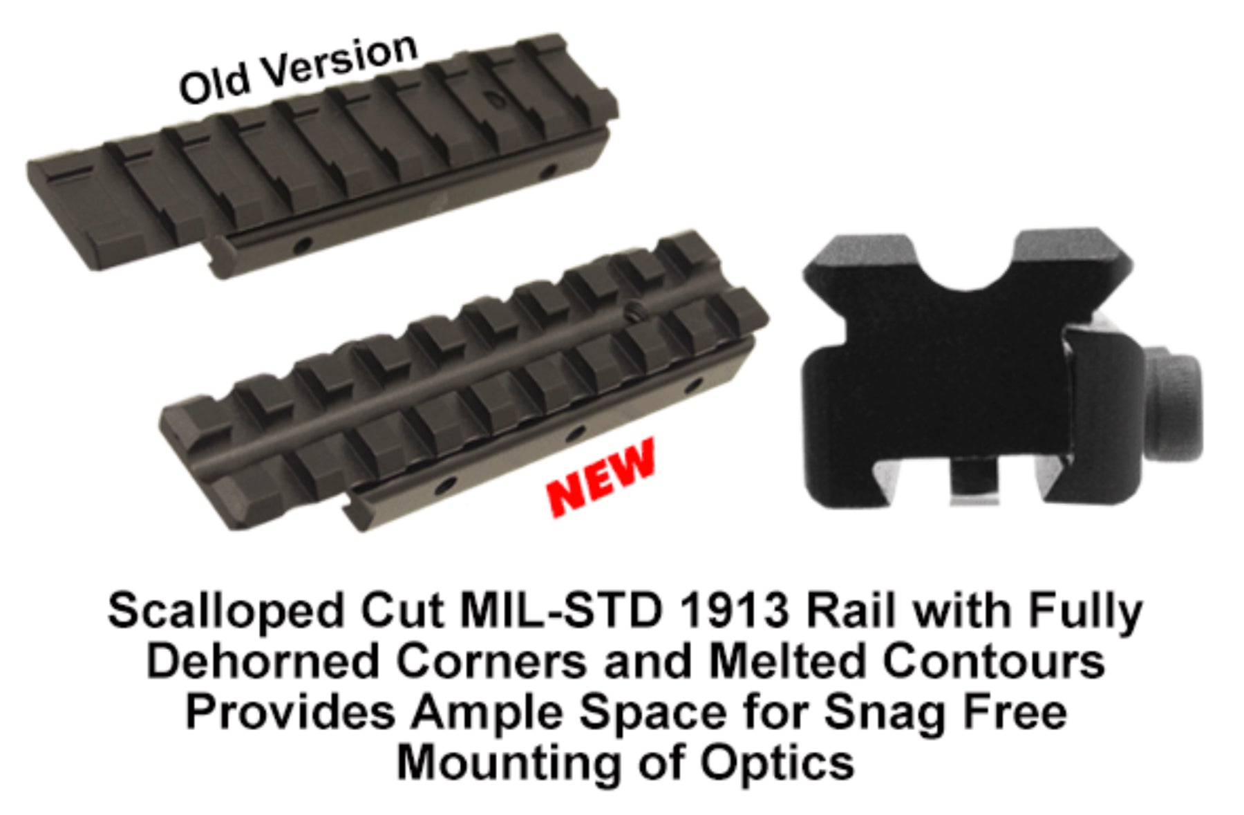 - 3.94" Scalloped 9 Slot Picatinny Rail with 0.59" Saddle Height
