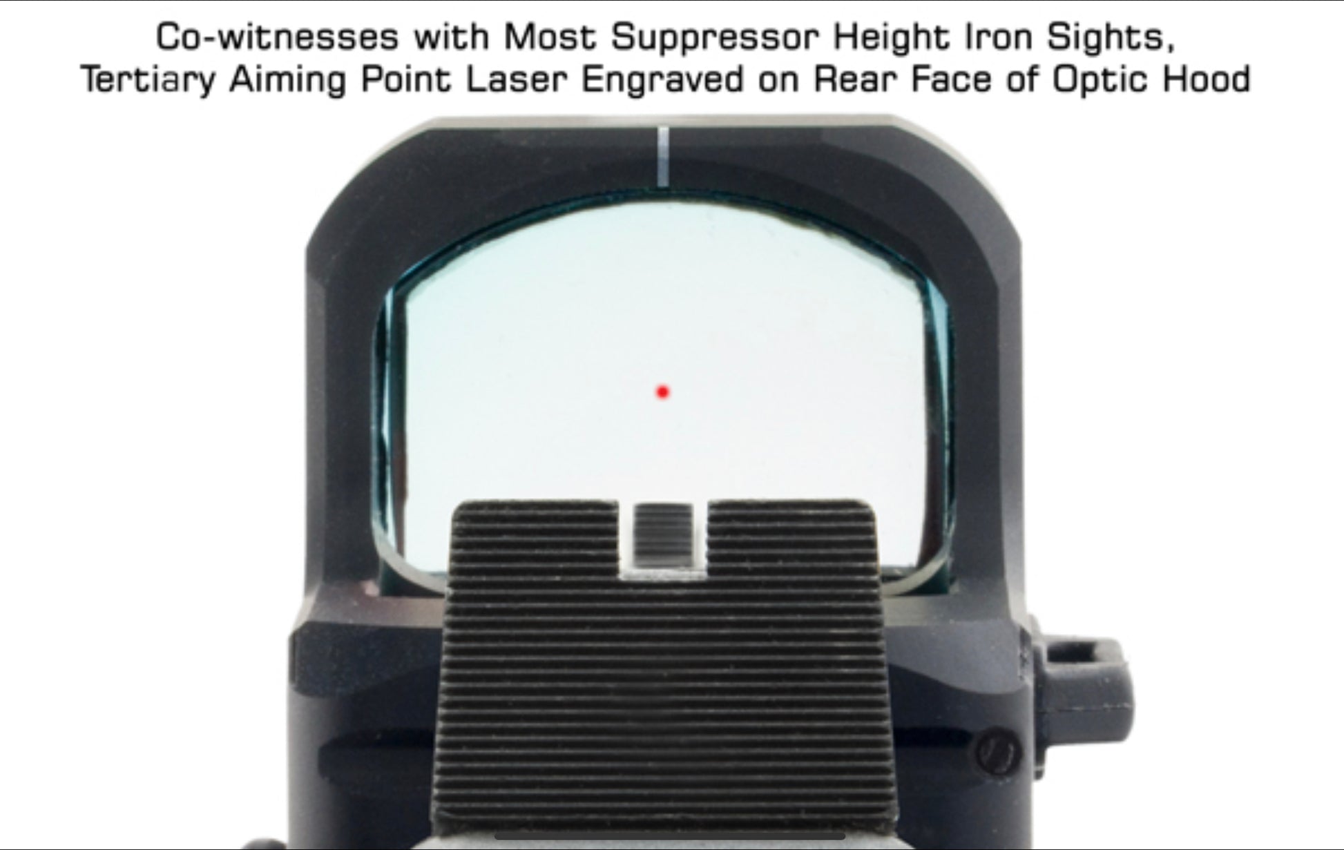 - Tertiary Aiming Point Laser Engraved on Rear Face of Optic Hood