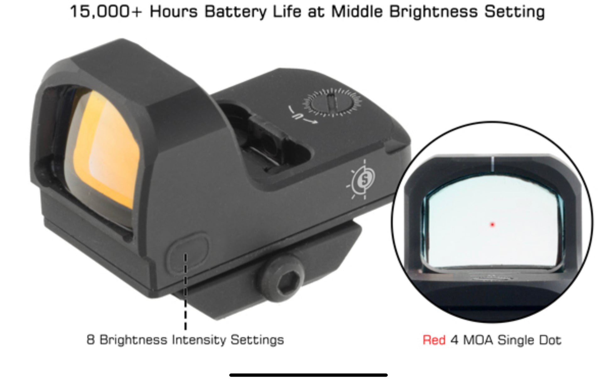 - Red 4.0 MOA Single Dot with 8 Brightness Intensity Settings