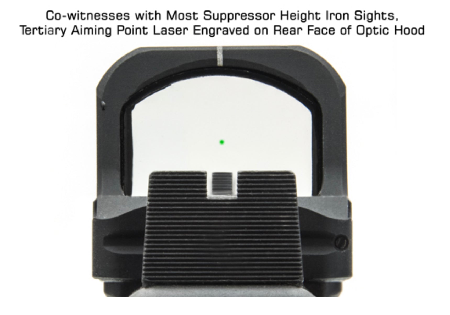 - Tertiary Aiming Point Laser Engraved on Rear Face of Optic Hood