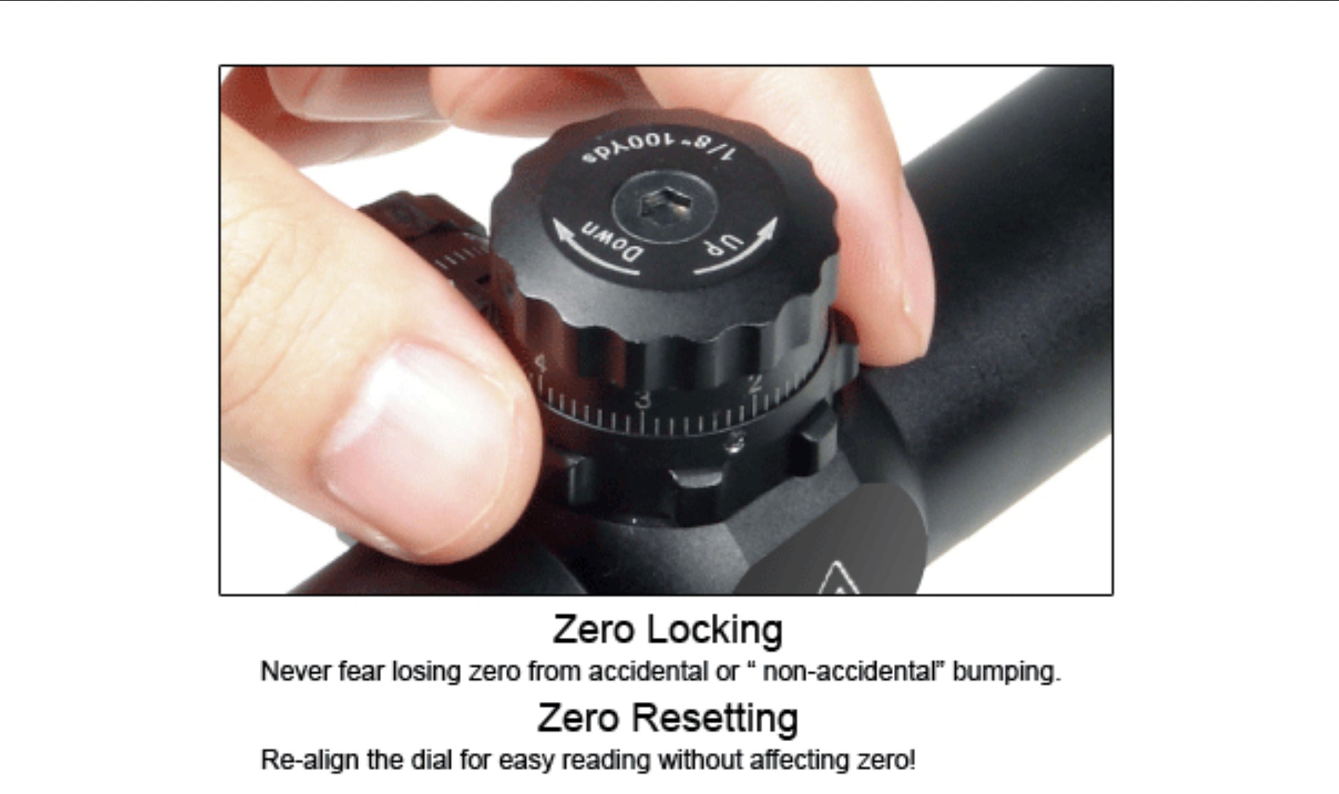 - Premium Zero Locking and Zero Resetting Target Turrets with Most Consistent and Precise 1/4 MOA per Click Windage/Elevation Adjustment