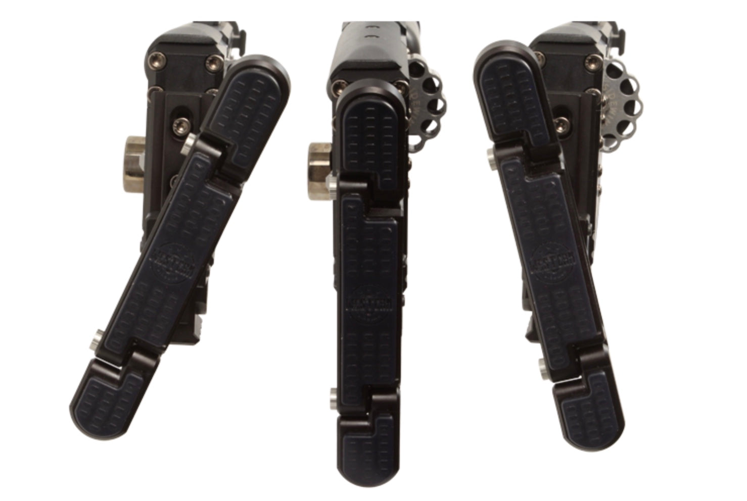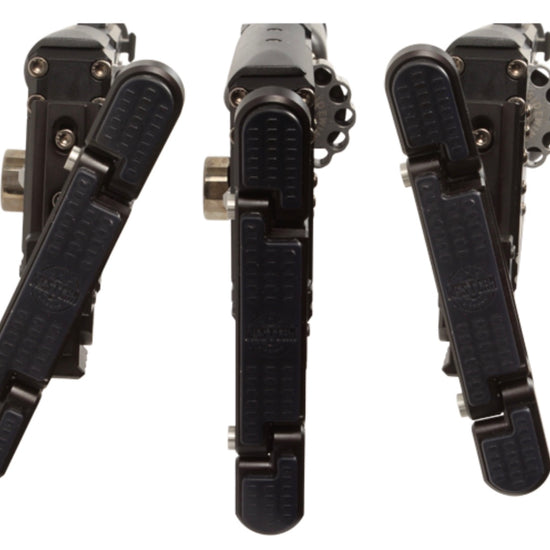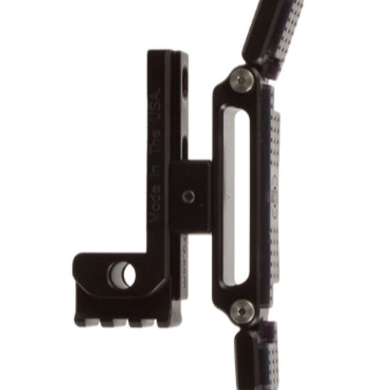 Easily raise or lower the plate by 2.5 inches, rotate the pad for optimal cant compensation, and enjoy a secure hold with tactile hard rubber pips. The design features a narrow bottom plate that fits snugly in your arm and a wider top plate to evenly distribute shoulder pressure. Additional enhancements include a Quick-Release Sling Mount and a Picatinny rail at the base for added versatility.